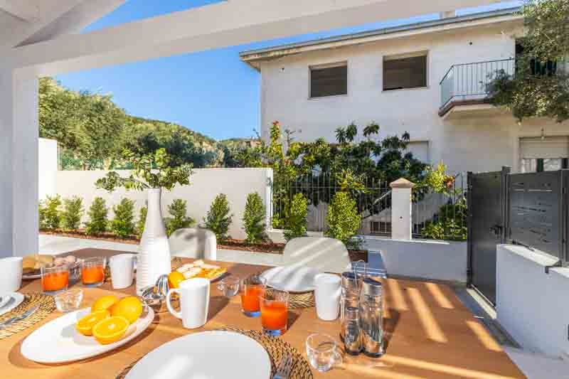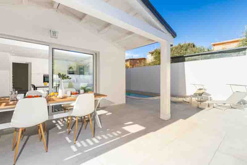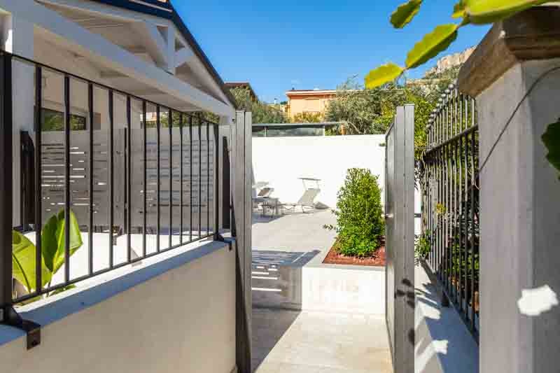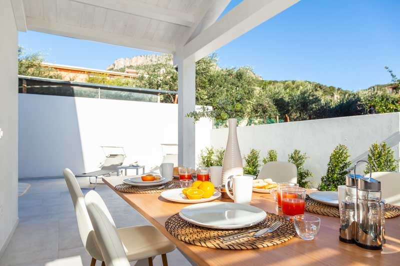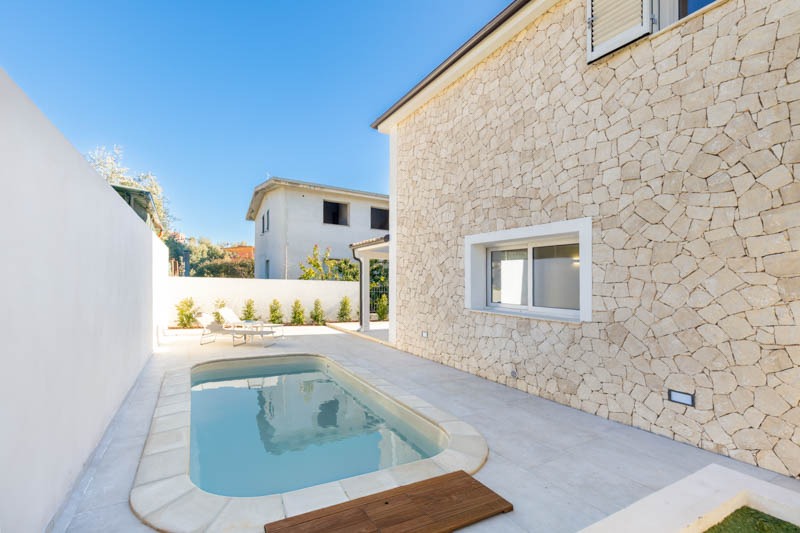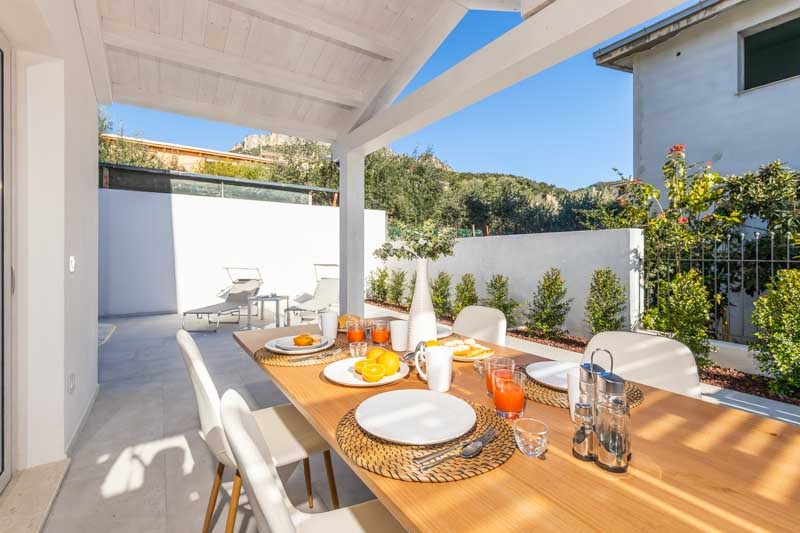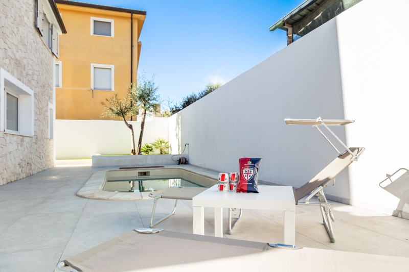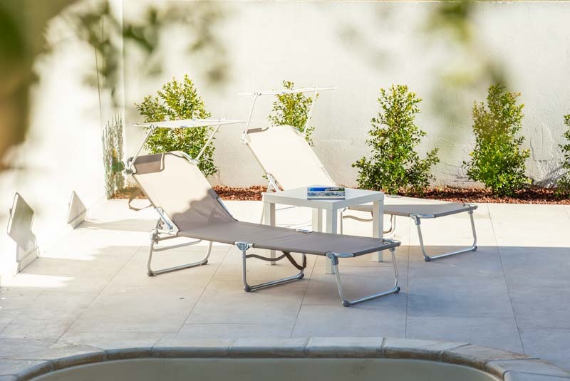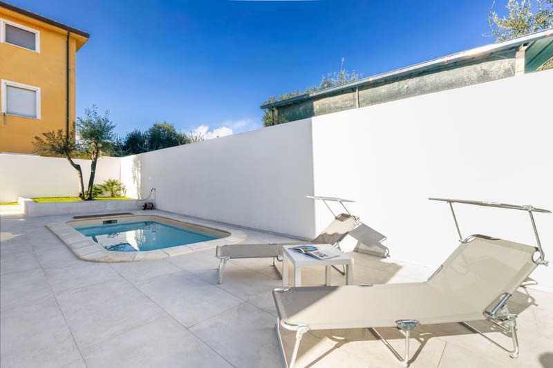 All’esterno è presente una piccola piscina privata, ideale per rilassarsi al rientro dal mare o dopo una giornata di escursioni.