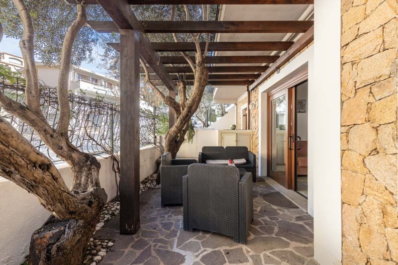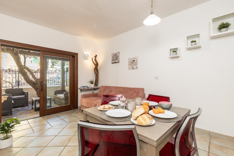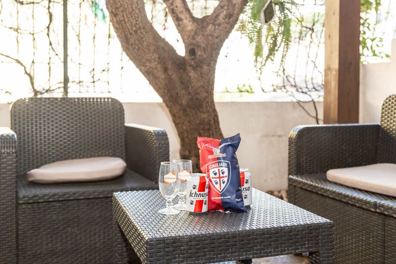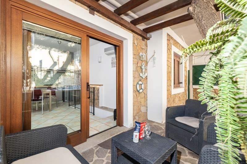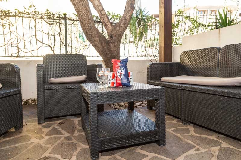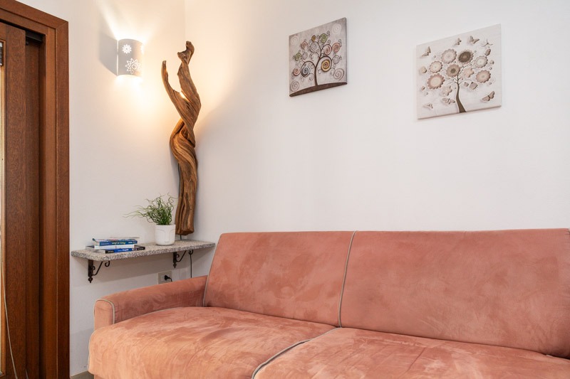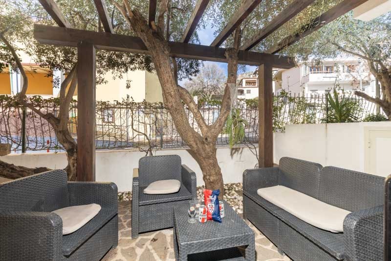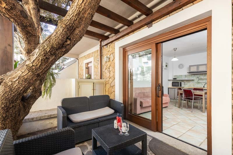 All’ingresso troverete un cortile arredato con salottino, ideale per rilassarsi all’aperto o godersi una colazione tranquilla prima di una giornata di mare.