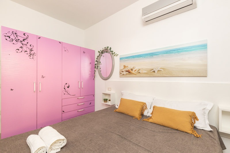 Al piano seminterrato, più fresco e riservato, si trova una seconda camera matrimoniale e un secondo bagno, perfetto per chi desidera maggiore privacy o viaggia in compagnia.