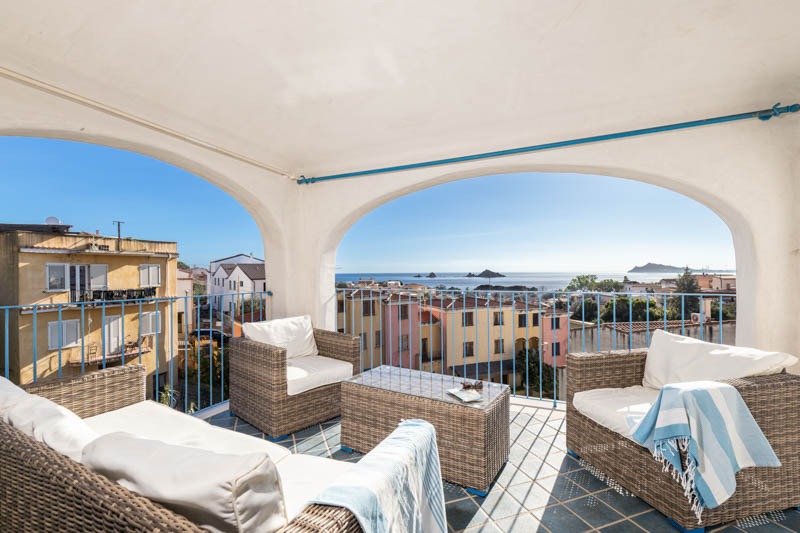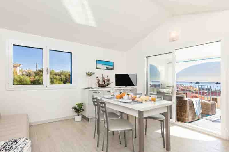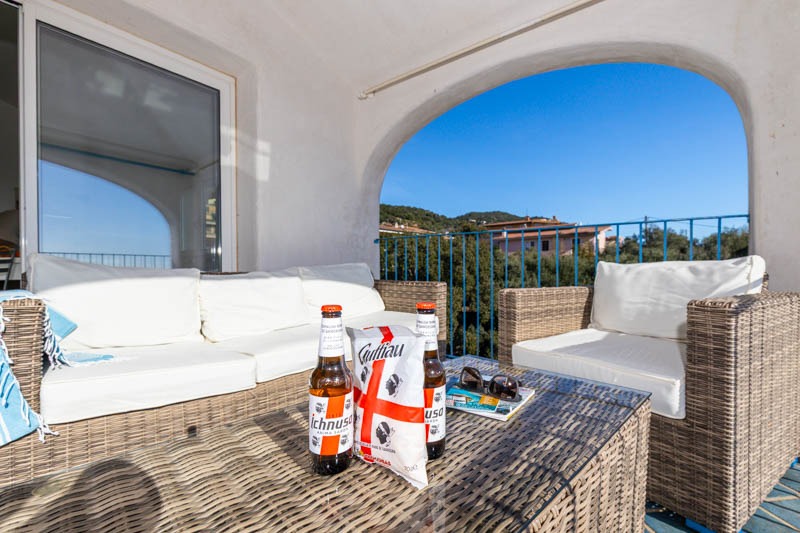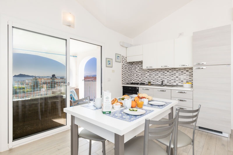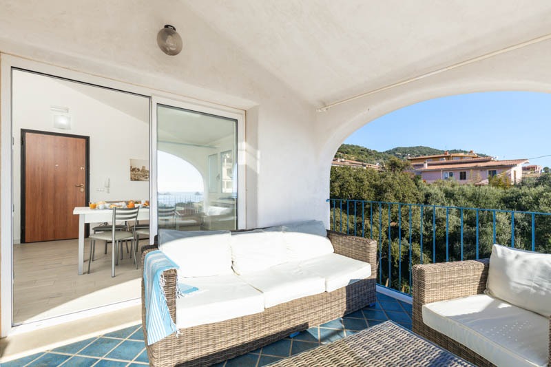 La zona giorno è accogliente e pratica, mentre la terrazza con una splendida vista mare regala un panorama aperto e suggestivo, perfetto per rilassarsi e godersi l’aria marina in diversi momenti della giornata. La terrazza è pensata principalmente come area relax.
