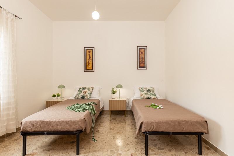 La casa dispone di tre camere da letto, perfette per ospitare famiglie numerose o più coppie, un bagno con doccia e uno spazio esterno privato dove rilassarsi o mangiare all’aperto.