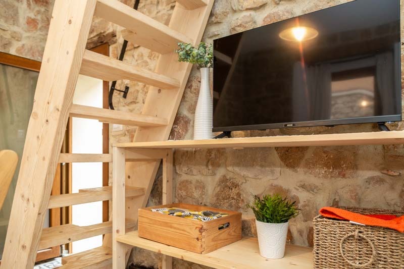 Climbing House è una tipica casa in pietra disposta su due livelli. Al piano terra troverete un ambiente accogliente con angolo cottura e zona salotto, uno spazio raccolto e funzionale dove rilassarsi dopo una giornata intensa tra mare e montagna. Una caratteristica scala a pioli in legno conduce al piano superiore, elemento distintivo che dona personalità e carattere alla casa. Al piano superiore si trovano il bagno e la camera con due letti singoli, trasformabili in matrimoniale secondo le vostre esigenze.